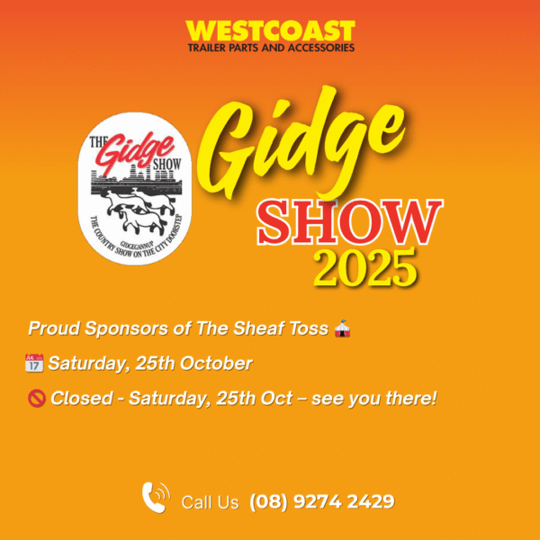 We’re getting ready for one of the highlights of the year—the Annual Gidge Show! 🎪 West Coast Trailer Parts & Accessories is proud to be sponsoring the always-exciting Sheaf Toss competition, together with our friends at Midland Towbars. 📅 When: Saturday, 25th October 2025 📍 Where: Gidgegannup Showgrounds 👉 Please note: Our shop will be closed Saturday, 25th October […]